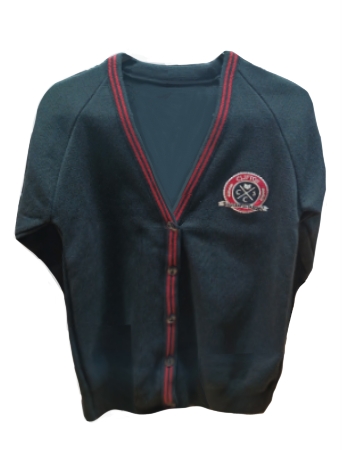 Clifton School Cardigan With Logo – Black With Red Stripe